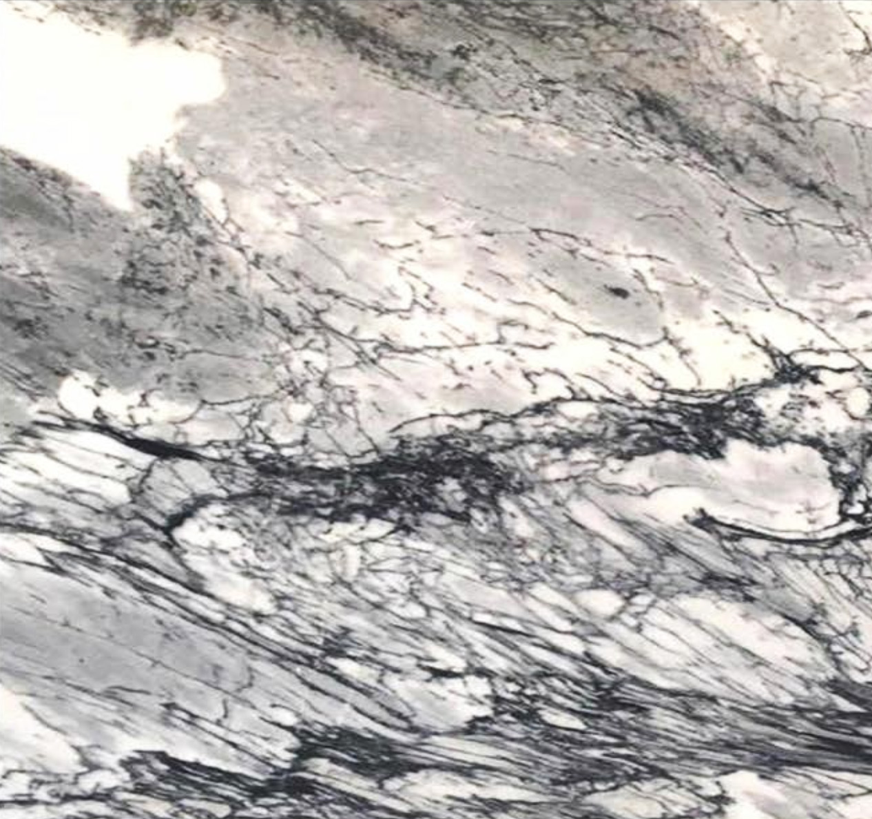 Bright and Translucent Colors: Mostly white or silver-gray with natural gray veining and visible crystals.