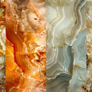 Hybrid of Travertine & Onyx: Offers the textured structure of travertine with the subtle translucency of onyx.